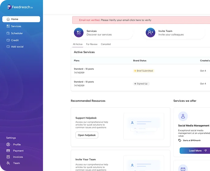 FeedReach helps you scale faster by scheduling, and analytics, making it easier to grow your brand as a social media management business trusted by partners and clients.